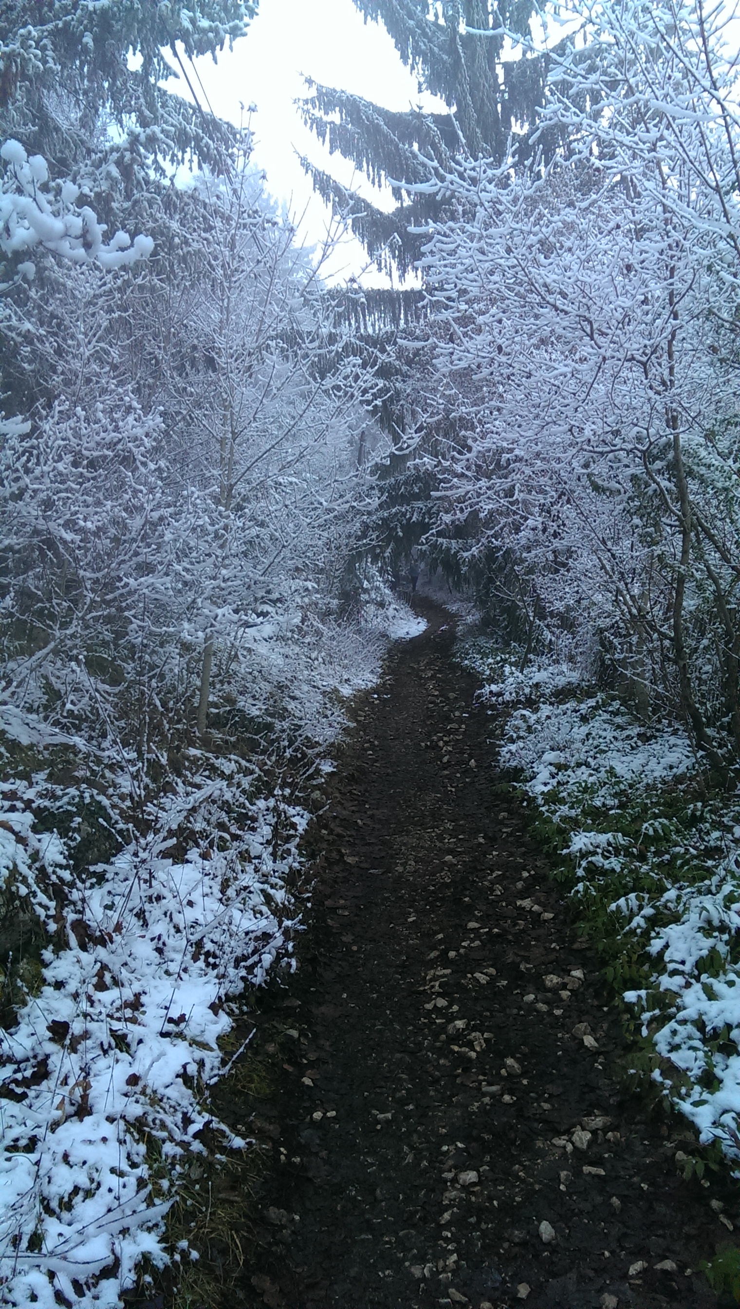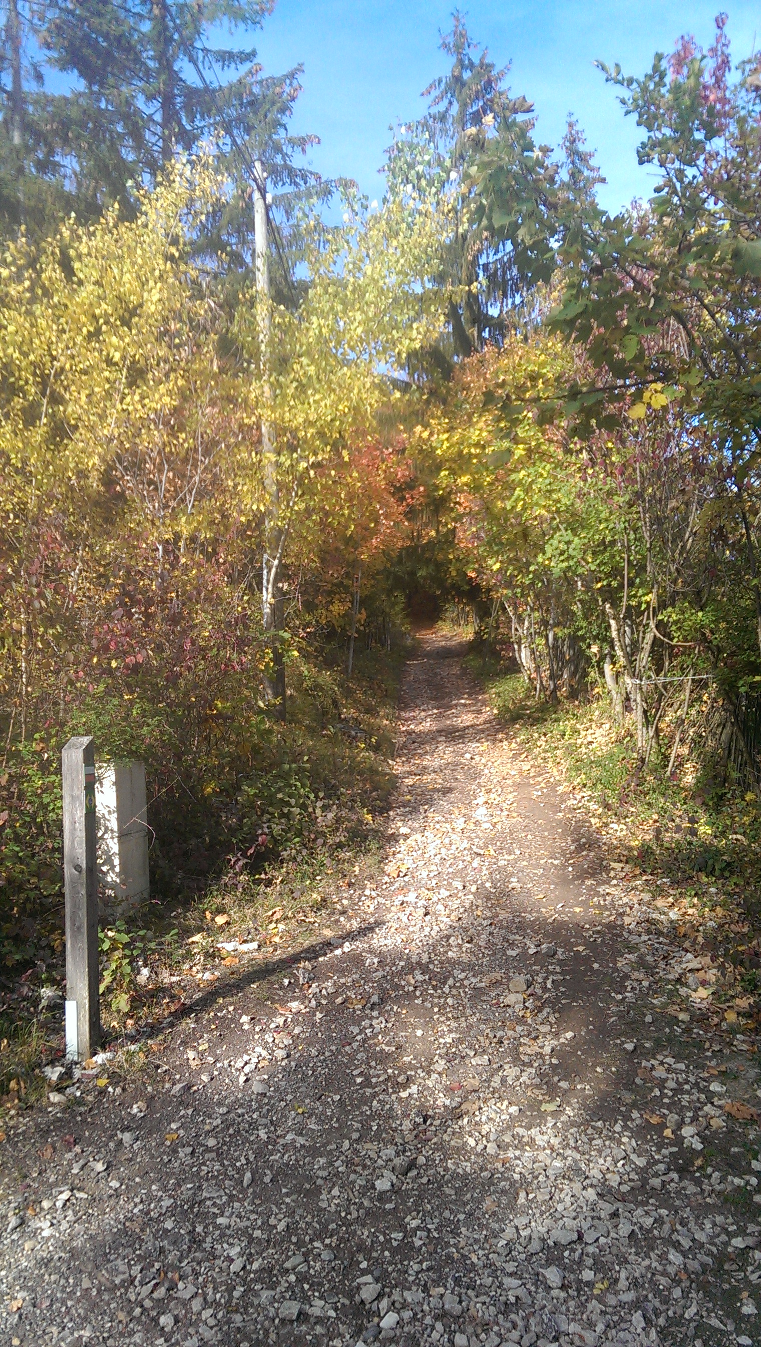 Another challenge that someone trying to hike the Salève 100 times needs to confront is weather. The téléphérique (cable car), which is my preferred means of transportation back down the mountain is out of service from December through February, so unless you’re willing to hike both up and down in the snow, you have to do most of your hiking during the other nine months of the year. But even then, sometimes you can’t avoid encountering a little of the white stuff above a certain altitude. For example, I shot the two photos below at the same spot on two different hikes. Notice how the trail on the left looks a little more enticing than the same trail on the right.