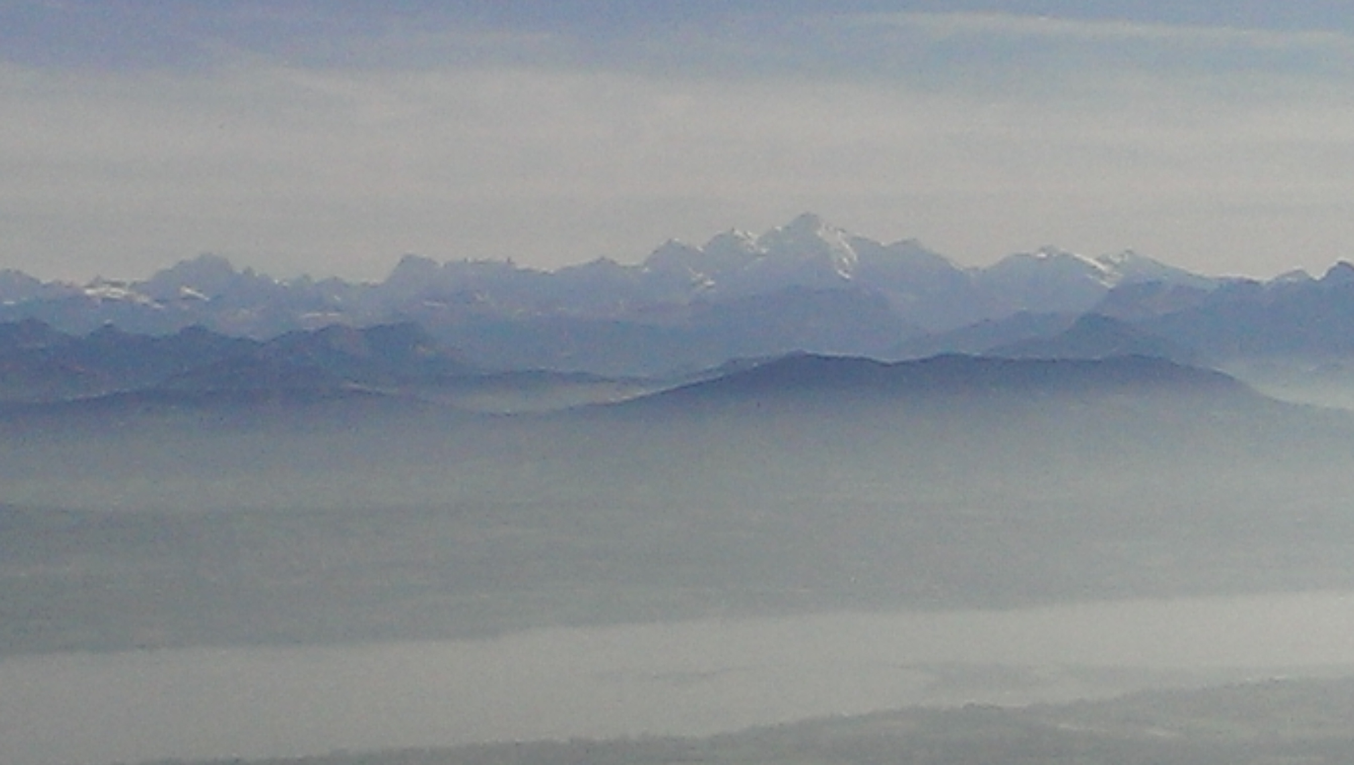 I still had a 20 kilometer bike ride ahead of me, so I climbed back on my bike and pointed it toward Geneva. Yes, my legs were a little wobbly on the away back, but fortunately, I had this view of the Alps (that’s Mount Blanc, Europe’s highest peak) to keep me company the whole way home.