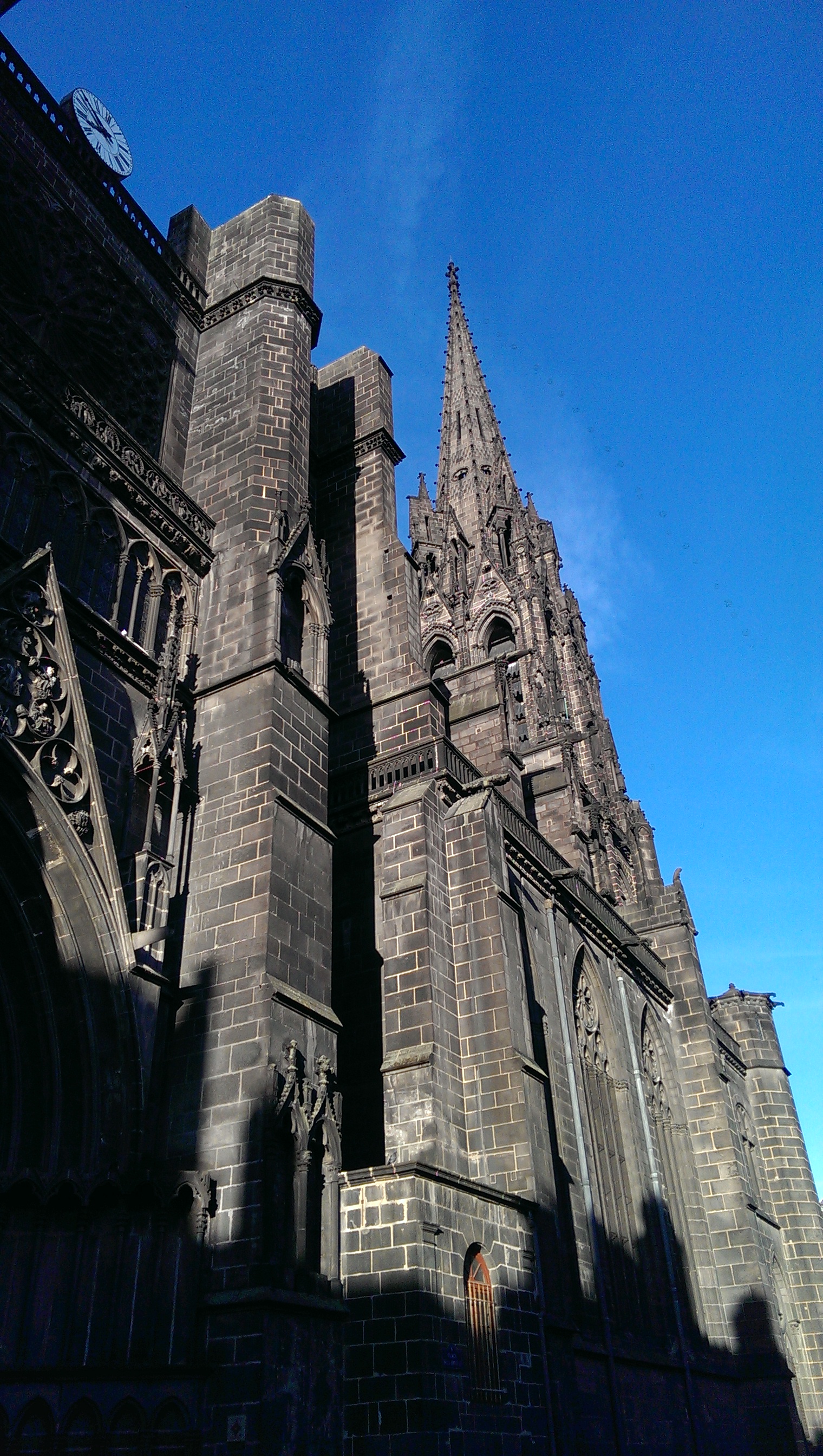 During our travels, I have photographed many of these cathedrals, (even featuring them in a blog post – Sainte Chapelle in Paris, for example) with the intention that I would eventually write broadly about the grandeur of the gothic European Cathedral. But I recently realized that attempting to cover the majesty of the architecture and art embodied in European cathedrals was too great a task. So instead, I’ve decided to focus on only one: the Cathedral of Notre Dame Clermont, in Clermont, France.