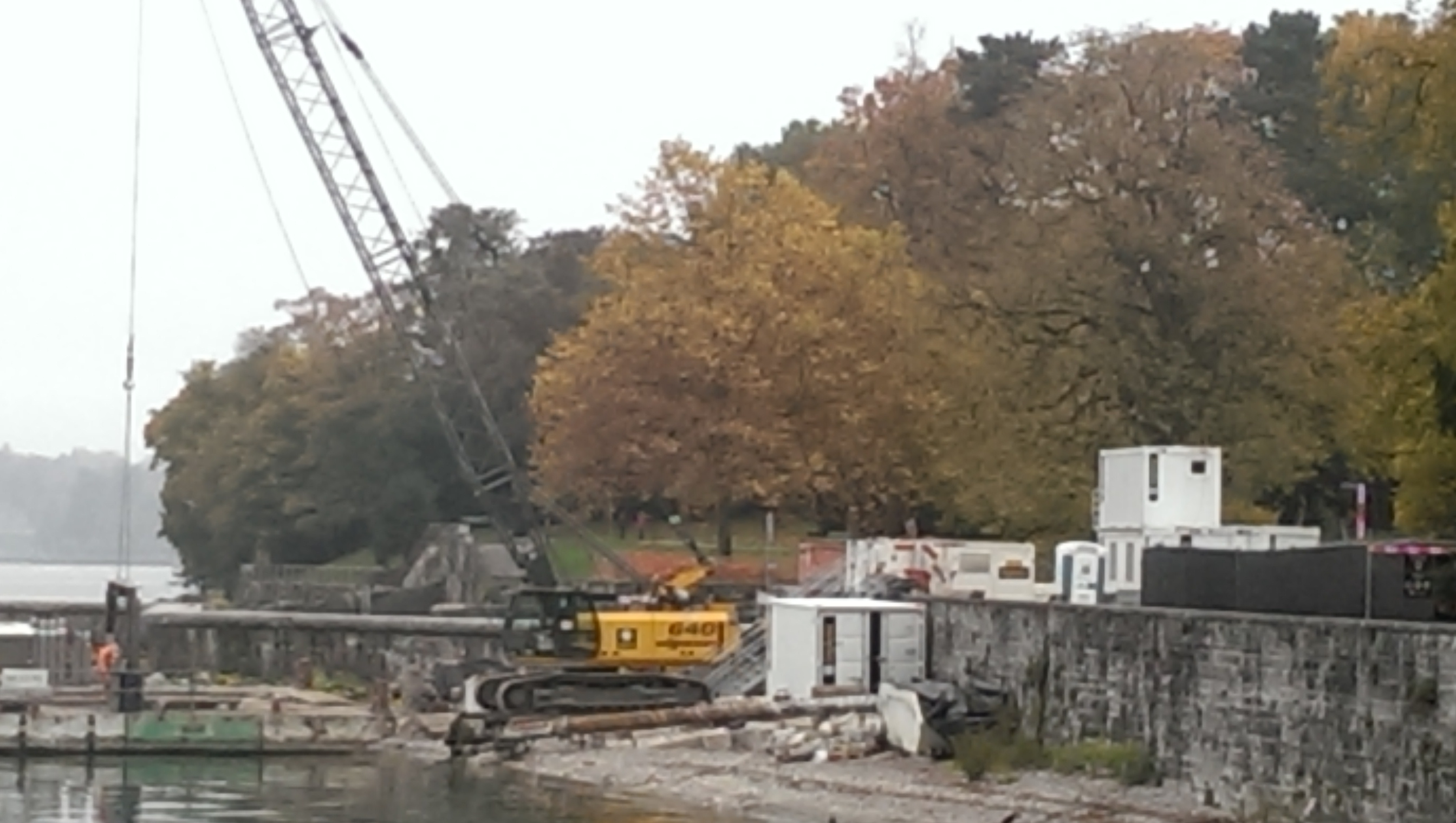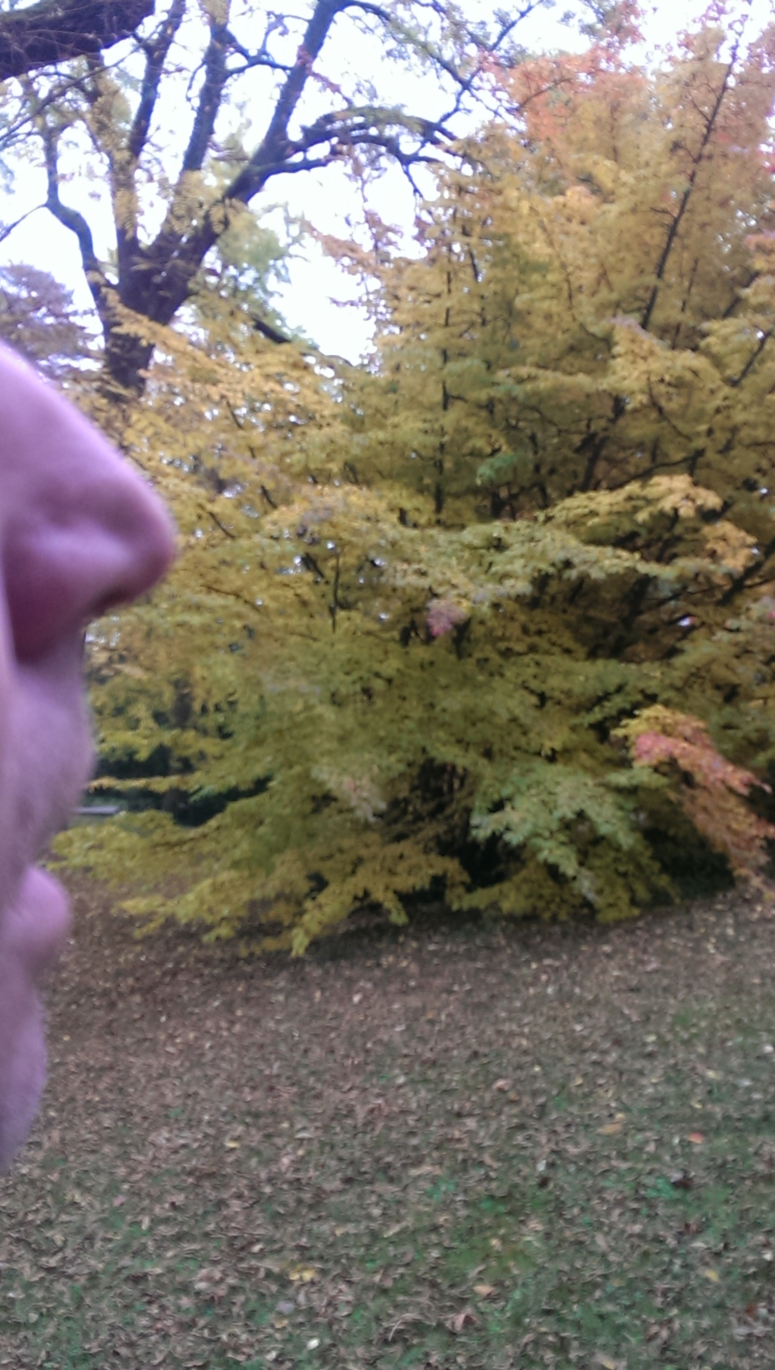 For those of you who regularly follow this blog, you are certainly aware by now of my gift for fine photography, especially photos of the natural world. In this post, I exhibit a series of photos – and one video – that portray the stunning beauty of Geneva’s fall colors. But anyone with a cell phone can take a pretty picture of colorful leaves. In this exhibit, I aspire to take the art form to a whole ‘nuther level. As you will see, each picture contains beautiful fall colors, but the beauty is juxtaposed with a foreign object that is kinda ugly. And yet, the beauty of the natural colors prevail. In the art world, this is known as “art”.