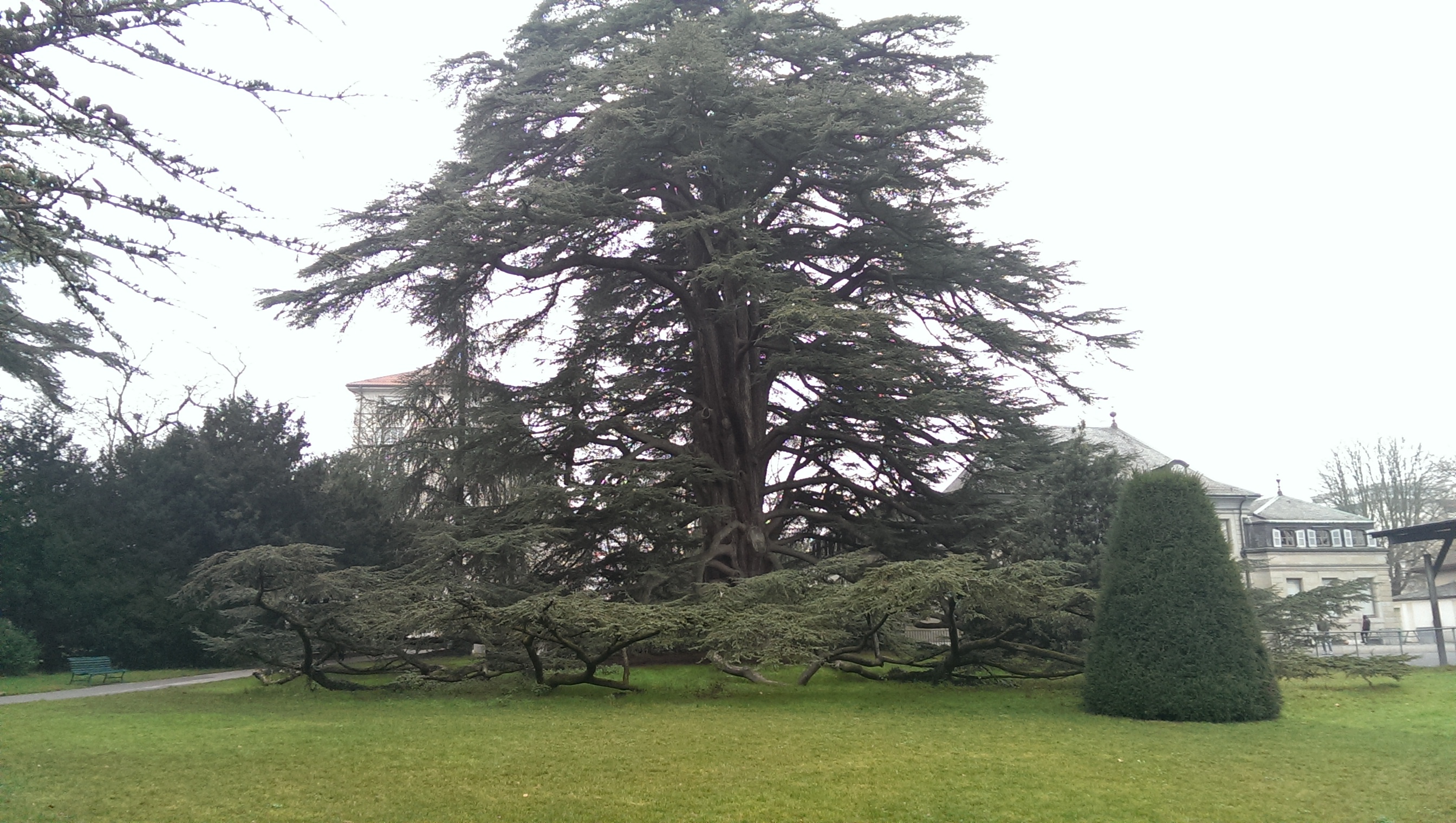 Here’s another tree species that is a natural oddity. I believe this is a Blue Atlas Cedar. Notice how the lower branches are left to droop to the ground, then rise up again. The lower branches of the tree effectively become conifer bushes that surround the tree. Ever seen that in the U.S.? I haven’t.