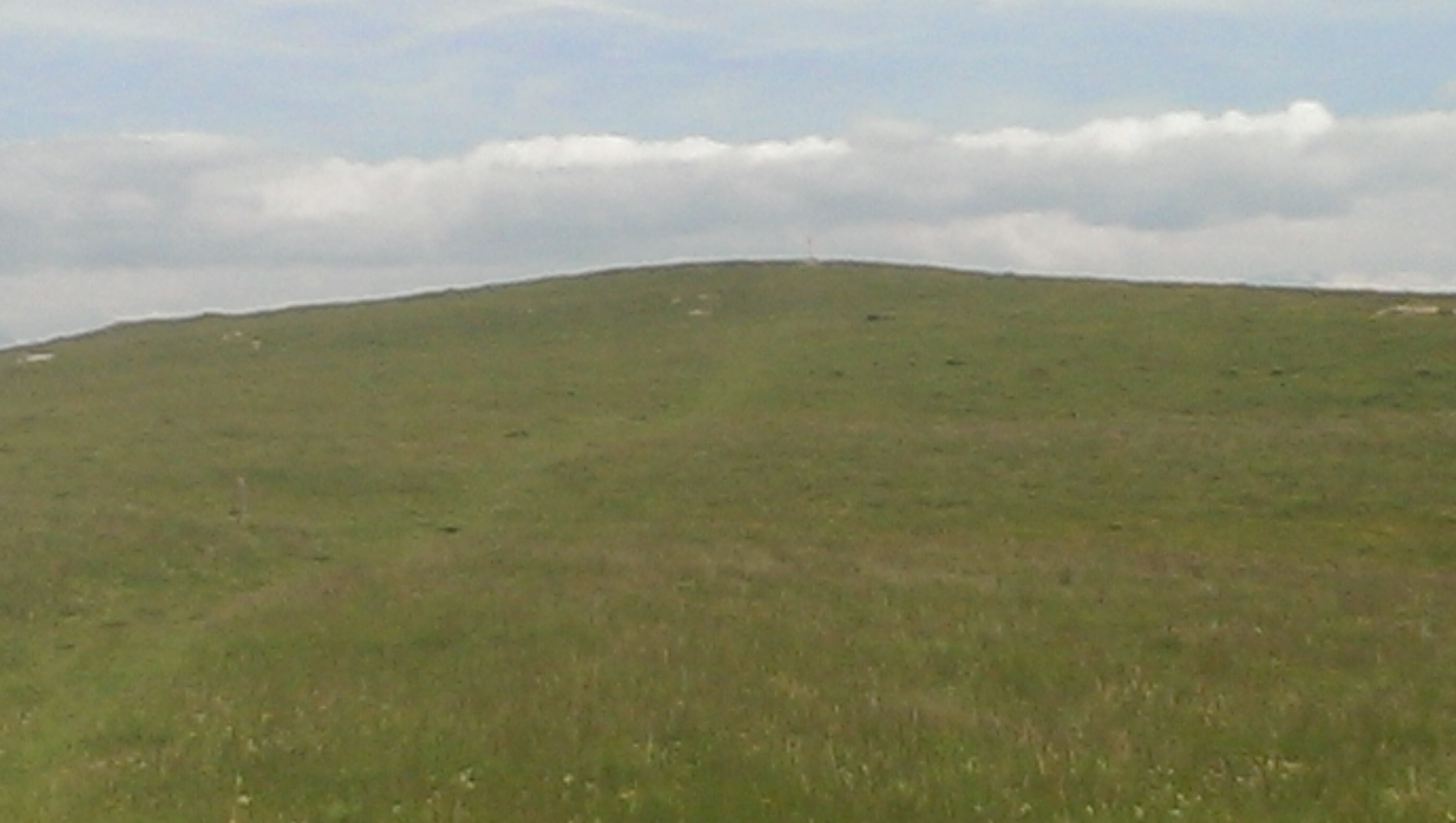 4:00 now, and I’m 30 minutes from the summit. At this point, I’m hiking along a gentle grassy knoll (all knolls are grassy) up to the highest point. Here’s what that looks like.