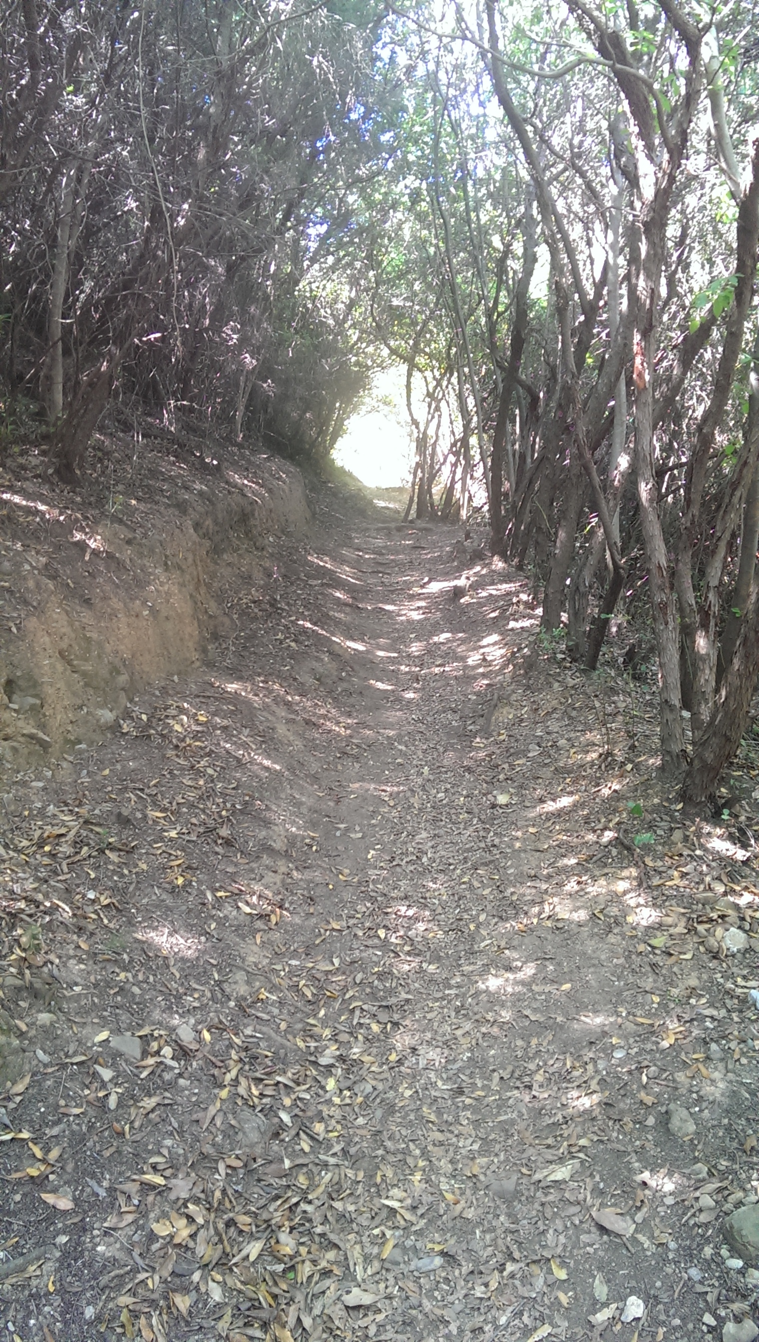 The next neat thing that happened totally blew my mind! After once again regaining the altitude necessary to get to the next town, I heard some loud “rustling” up ahead on the trail. There are small lizards that scurry along the trail every few steps, or so it seems, but this rustling was too loud to have come from a small lizard. I figured it had to be other hikers, but they were making more noise than a hiker typically makes, and there was no speaking, just the rustling. I said to myself, “Gee, I wonder what could be making that loud noise?”. I turned a corner, and saw this!